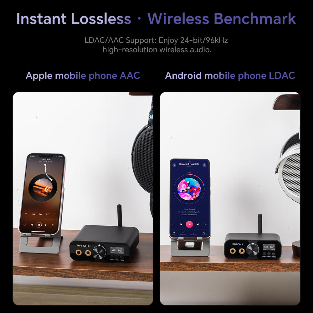The March M3 supports various high-resolution audio formats including MQA, DSD, and DXD! Its Bluetooth section supports multiple high-quality codecs: LDAC, AAC, and SBC!